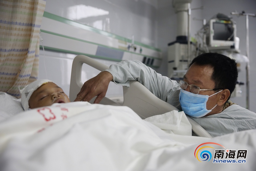 房战士每天下午都会在小龙的病床前呼唤儿子的名字。南海网记者刘洋摄