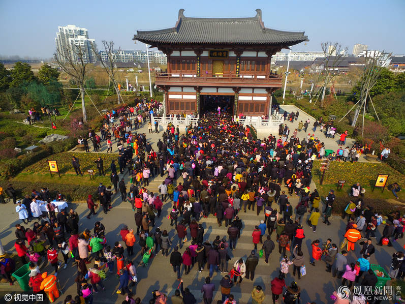 2017年2月12日,安徽滁州,全椒太平桥上人山人海,人头涌动。据了解,“正月十六走太平”是全椒县独有的传统民俗活动,从当天凌晨到深夜,人们纷纷从城东襄河的太平桥上走过,祈求平安幸福。