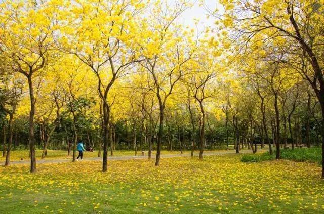 每年的3-4月份,深圳的马路上有很多黄花风铃木花,花朵的颜色鲜黄,形状也像一串串风铃挂在树上一样,微风拂来,掉落的花瓣让人沉醉不已!