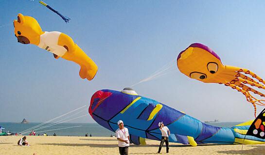 每年十月底,是深圳一年一度地国际风筝节,大梅沙沙滩上都会举行一场风筝赛,吸引着大批歪国的风筝专家漂洋过海来参赛,在海边,迎着海风放风筝绝对是飞一般的感觉。
