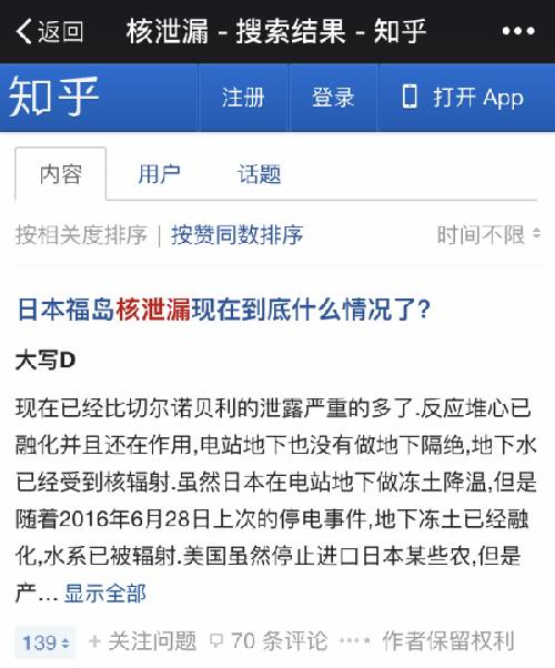 再比如,这两天,有微信公众号发帖称“恐怖怪鱼开始密集出现!中美加澳均检测出福岛核污染海水,30年内扩展至全球”,“素有‘核事故指纹’之称的铯-134首次在美国和加拿大海岸被发现!”