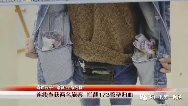这批孕妇血液每两三支捆扎在一起,都备注了孕妇的姓名,同时还附带有B超单等文件资料。而就在此前的2月9号,罗湖海关刚刚查获一名男子,利用冬天穿得多,把73管孕妇血藏匿在牛仔夹克内外口袋的案件。