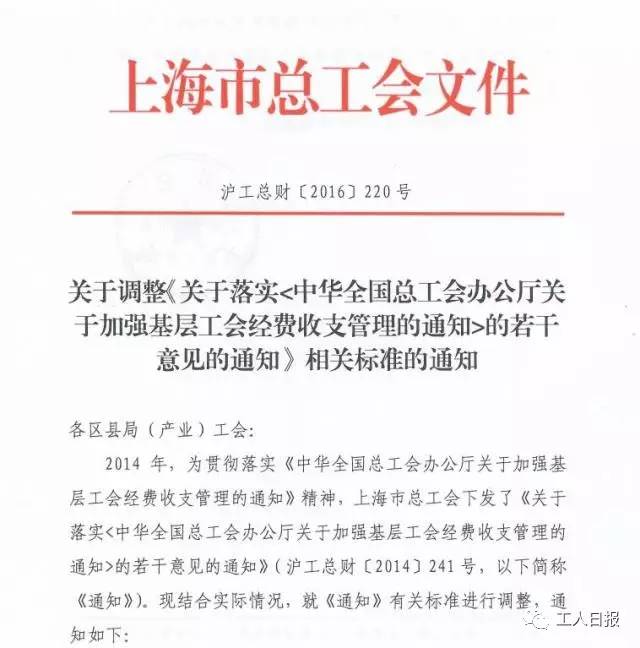 2016年7月,上海市总工会发布消息:修订上海基层工会逢年过节慰问品发放标准,修订后为“年度逢年过节慰问品的发放总金额不得超过当年度基层工会留成经费的50%”。