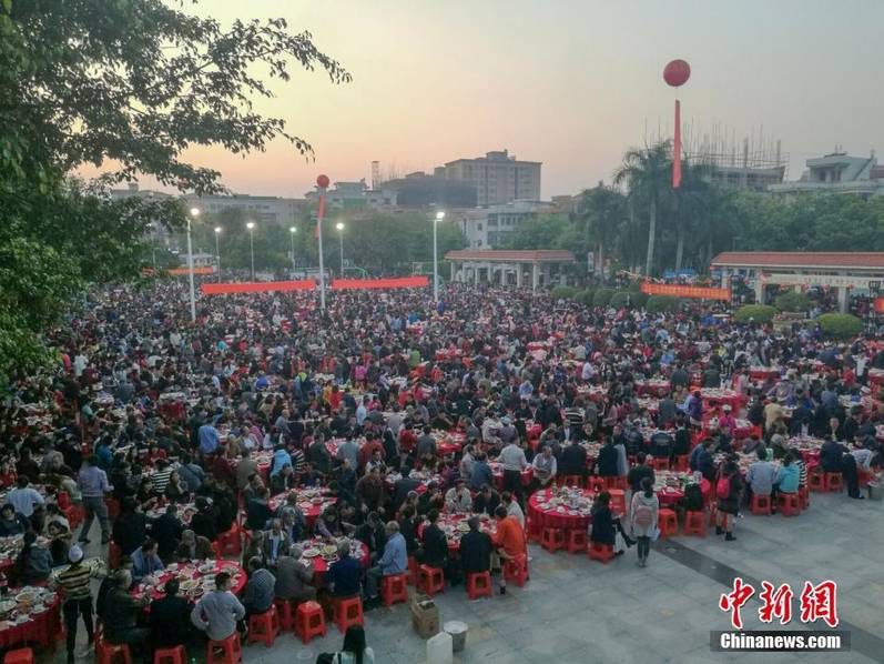 东莞麻涌镇2月15日举行2017年大步巡游活动,保护、传承“大步巡游”这一非物质文化遗产,弘扬优秀的传统文化。大步巡游活动当天晚上的聚餐,是每年都得举行的一项内容。