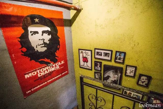 楼梯的墙壁贴满了摇滚音乐海报,想必店长也是一位摇滚控。