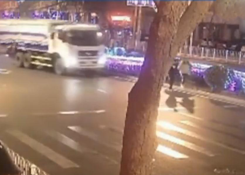 情侣马路中央散步 遭垃圾车碾压阴阳两隔