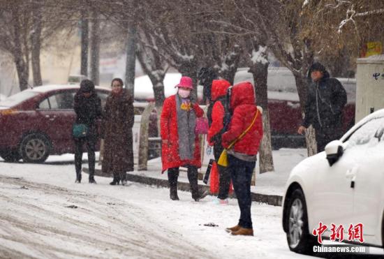 图为强降雪天气中,民众在车站等待公交车。中新社记者 刘新摄