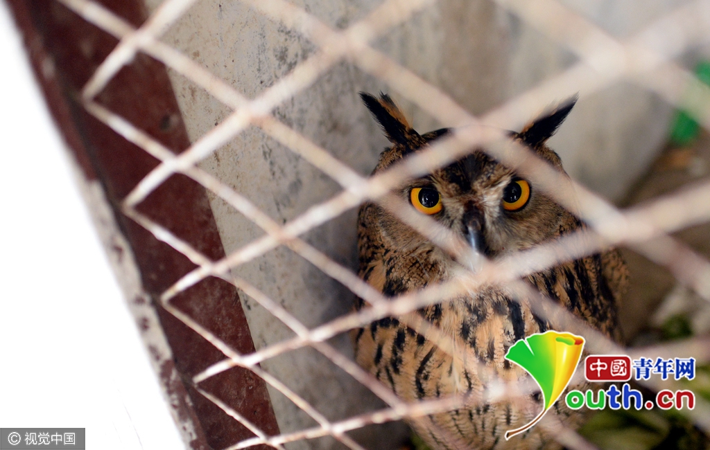 鸵鸟笼旁边是一个更小的关宠物狗的笼子,一只秃了毛的老孔雀瑟缩在里面。喂食的罐子是锈迹斑斑的雀巢奶粉罐,里面空无一粒。笼子旁边是一个已经装满的垃圾筐。谭德才说,院子里那几只孔雀要啄它,只能单独关。