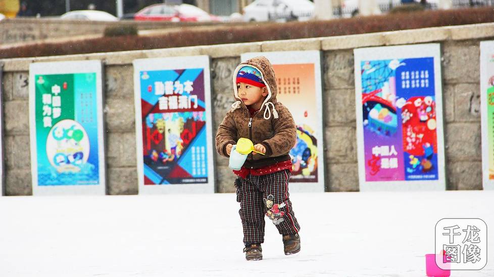 图为一位小朋友在雪中玩耍。李岩摄