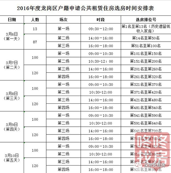 而选房时间被定在了3月6日至3月12日期间,此期间每天都有选房安排,其中第一天只接受排名在前100名的居民选房(前13名为历史遗留低收入家庭)。而排名在1300名以后的居民只能在最后一天(3月12日)进行选房。
