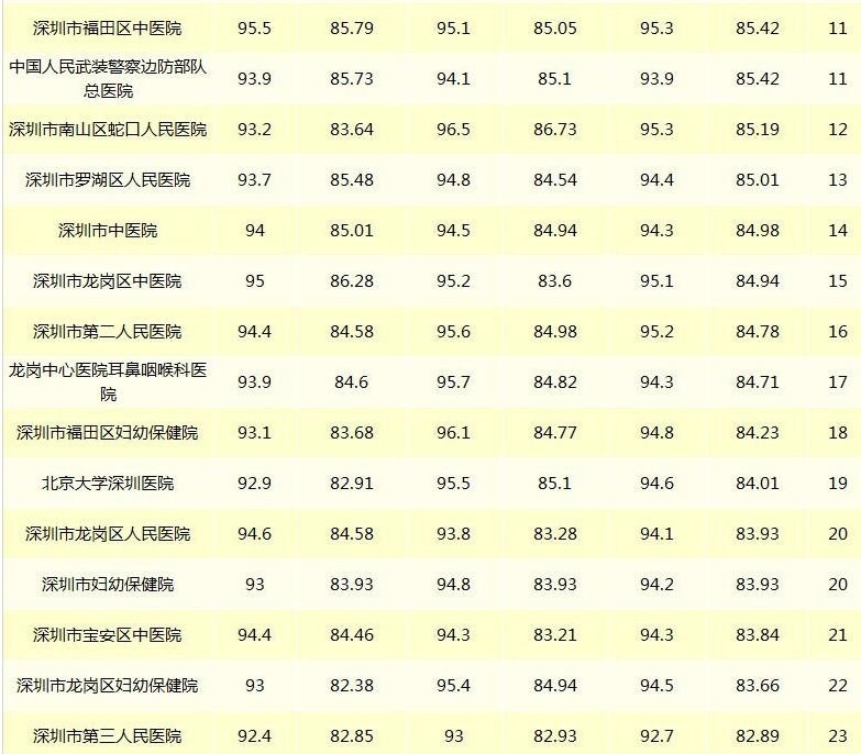 总体满意度分数一致的医院并列排名,其中并列第11名和第20名的各有2家医院。