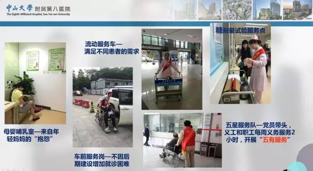 中山大学附属第八医院(福田区人民医院)推出了很多“探视服务”,包括住院探视(探视入院24-48小时的患者)、生日探视(为生日的住院患者送上院长签名的生日卡及鲜花)、节日探视(六一儿童节床边魔术表演、春节探视)。