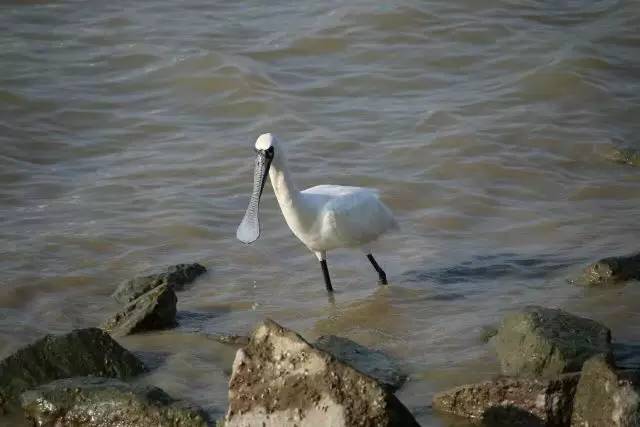近日,在深圳湾大沙河口,市民看到一只形影相吊的黑脸琵鹭巡弋浅滩觅食,它属于国家一级保护濒危珍稀鸟类。