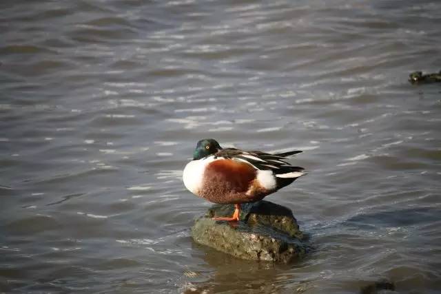 当琶嘴鸭沐浴着晨曦,悠闲地梳妆;