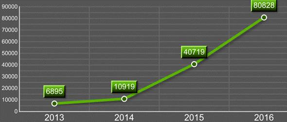 2016年,我市新能源汽车保有量为80828辆,与2015年相比,增加40109辆, 增长98.50%。