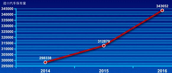 进口车与2015年相比,增加30773辆,增长14.45%。从统计情况看,2014年限购以来,进口汽车保有量以年均15104辆的速度迅速增长。