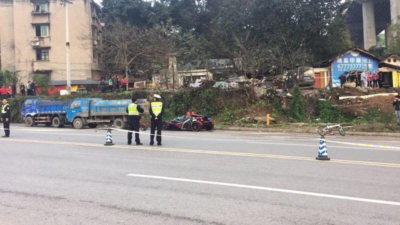 附近居民介绍,当时正在自家屋里睡觉,忽然听见一声巨响,便连忙跑出屋子查看。从现场的监控画面来看,当时超跑车的速度很快,撞上货车前,还撞飞了一位路人。附近目击者告诉记者,当时超跑车上就只有一个人:“才出事时自己拍了几张照片,但因为太过血腥让自己害怕,所以删除了。”