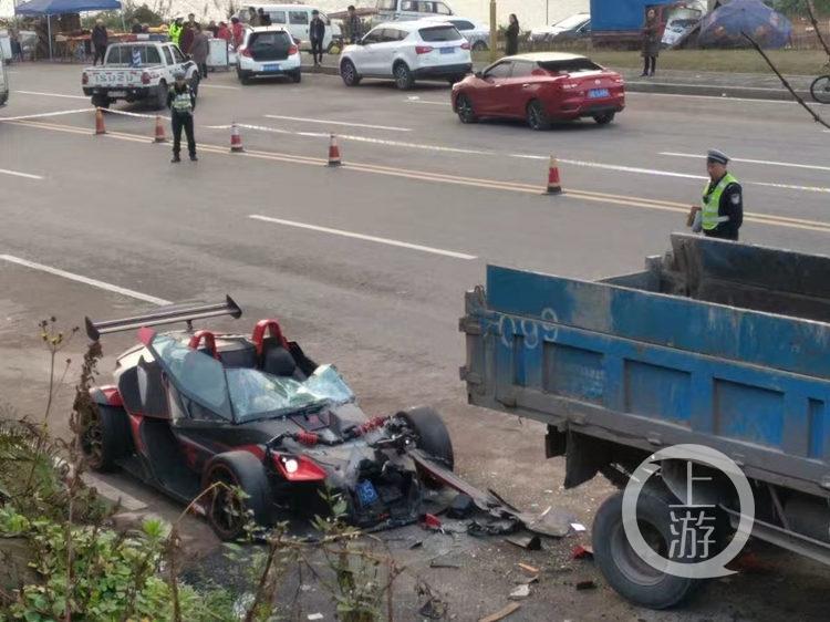 据重庆晨报报道,2017年2月25日下午5点20分左右,重庆南岸区南滨路洋人街入口附近发生一起车祸。一辆超跑豪车极速撞上路边停靠的货车,并撞飞路人。出事车型为KTM X-BOW,价值超过百万。事故造成当事司机死亡。据悉,当事司机并非车主,而是车辆改装店店员。