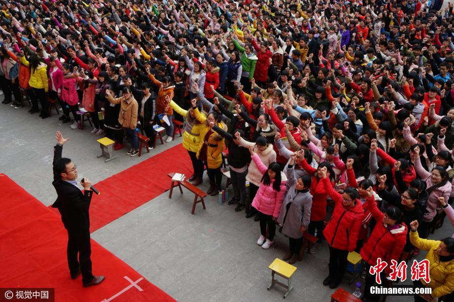 学校特邀请了某教育机构讲师进行演讲,现场场面震撼。图片来源:视觉中国