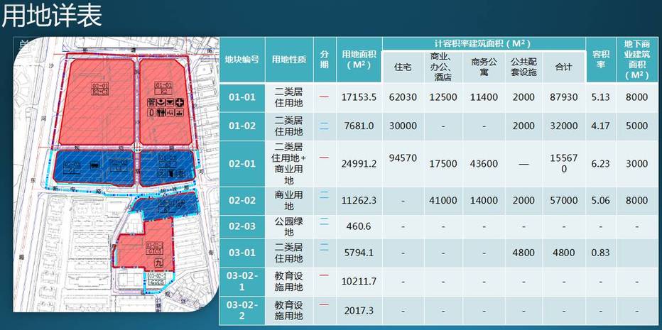 旧改一期:以二类居住用地和商业用地,主要是住宅产品供应和九年一贯制学校的配建。