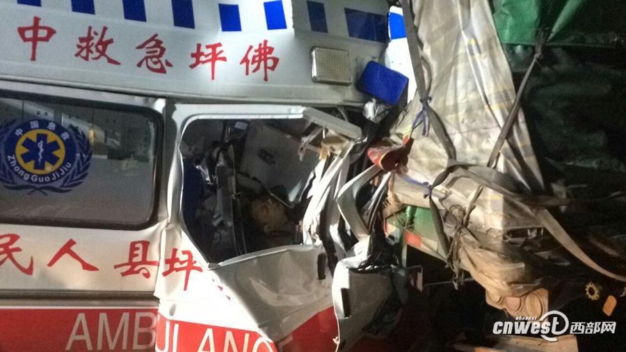 事故发生后车辆受损严重,救护车司机和医生两人被困。洋县消防赶到现场进行救援,破拆后确认2人已死亡。