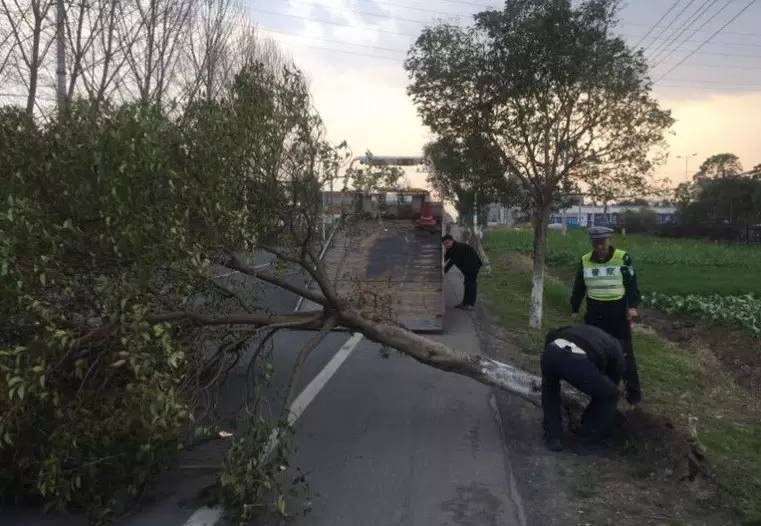 3月1日下午,镇江、丹阳两地狂风阵阵,间隙来袭。其中,丹阳丹延线上竟有两株行道树,因为大风而被刮倒,倒伏在路上阻塞交通。险情出现后,丹阳交警当即到场,将两株倒伏的行道树清理出路面。