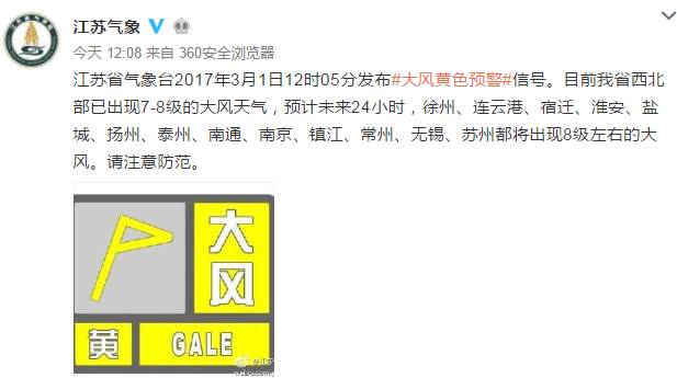 截止今天下午17时,有26个基本站超8级、6站超9级、最大盐城阜宁达10级(26.9m/s,16:40)。同时,连云港和盐城地区6站出现雷暴天气。预计傍晚至上半夜,全省大部仍有8级左右、江河湖面9级、海面9-10级大风。请注意防范。