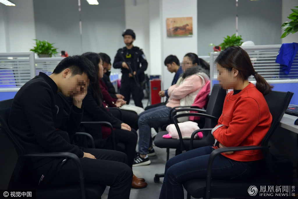 警方对这个公司的部分涉案人员带回做进一步审查。图为越秀抓捕现场。