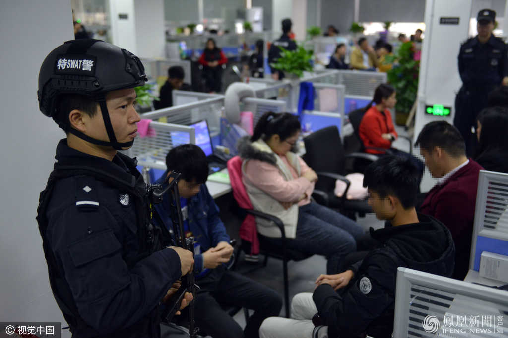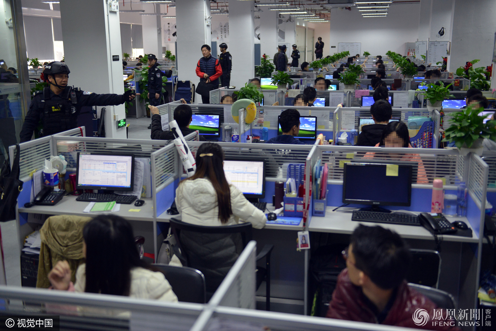 2017年2月28日上午,广东省公安厅通报,广东省警方近日集中开展的“飓风1号”专案收网行动,成功摧毁侵犯公民个人信息犯罪团伙6个,捣毁犯罪窝点14个,抓获犯罪嫌疑人138名,缴获涉及全国公民个人信息近1亿条,查扣银行卡2000余张和电脑、手机、存储设备一批。广州警方派出1千多名警力,赴各涉案地开展侦控和抓捕工作。据了解,27日早上7点,抓捕行动开始,各路警力迅速出击。图中的是广州越秀警方抓捕组,目标位于东风东路一栋写字楼内。抓捕现场,办公区域全部员工被要求举起双手。