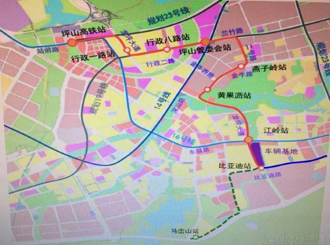 T1线:坪山站—比亚迪—马峦山,长8公里