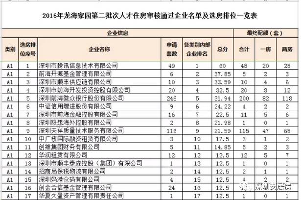 2016年12月1日,前海管理局发布了《关于龙海家园人才住房受理配租有关事项的通告》及《2016年前海第二批人才住房配租方案》,现根据相关要求将审查合格企业名单和配额、排位予以公示: