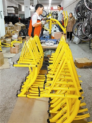 在麦可斯,工人们一天能生产1000多辆ofo共享单车。 深圳晚报实习记者 吴洁 摄
