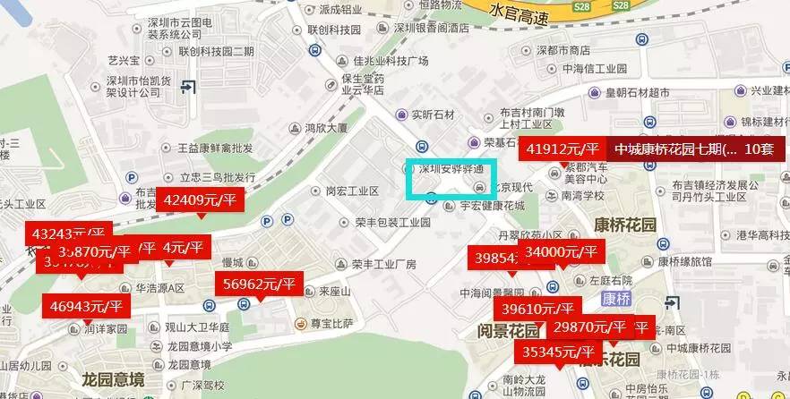 (布吉片区二手房价格 数据来源中原地产网)