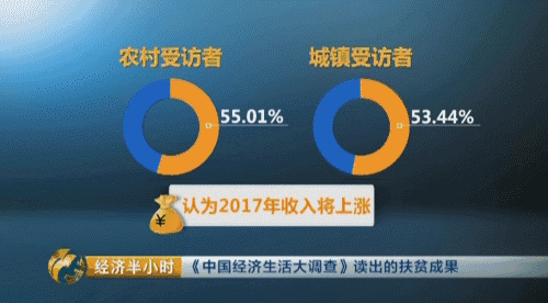 主持人陈伟鸿:今年我们大调查的主题是“小目标连上了小康路”,到目前为止,我们来看一看实时的数据,已经有超过了57万人次参与了我们网上的调查收入,是每个家庭都十分关心的话题,也是大调查最关注的问题之一。根据大调查数据显示,其中农村人口相比较城市人口,对2017年收入增加更有信心。