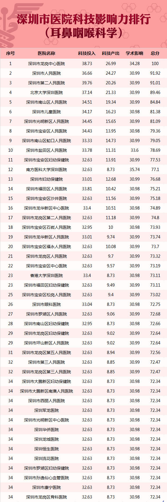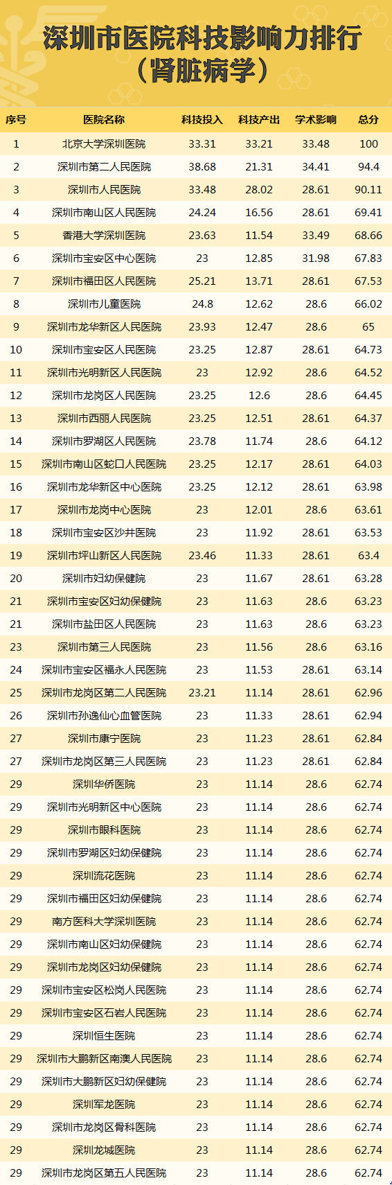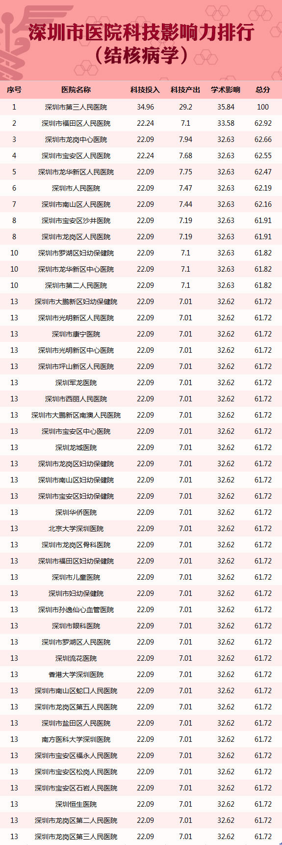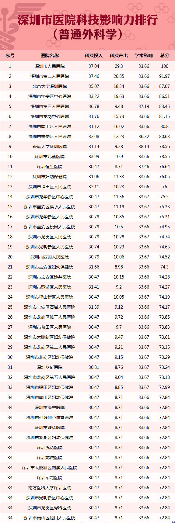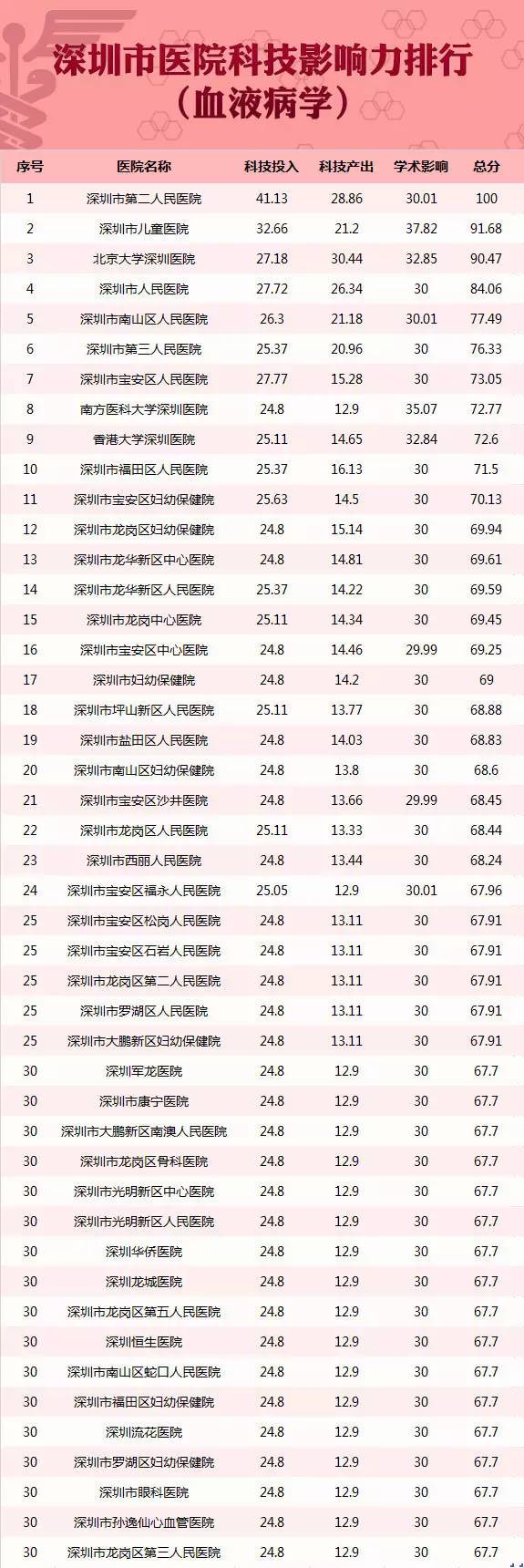 深圳首个医院科技影响力排行榜