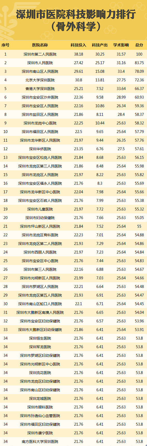 深圳首个医院科技影响力排行榜!26个学科冠军诞生,你关心的医院在哪?