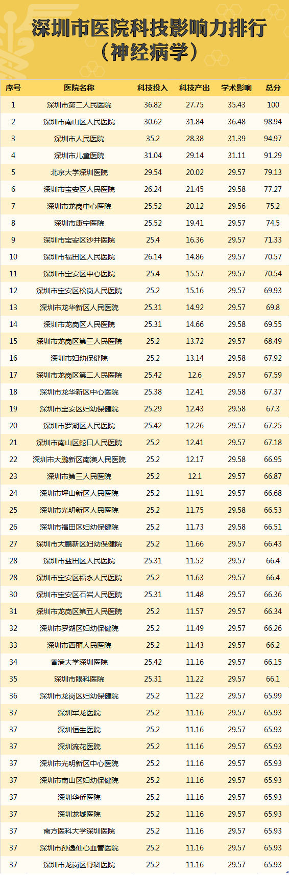 深圳首个医院科技影响力排行榜!26个学科冠军诞生,你关心的医院在哪?