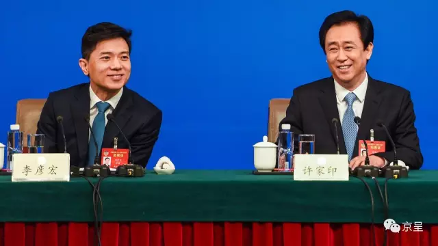 互联网大佬和房地产大佬坐在一起,笑容灿烂。