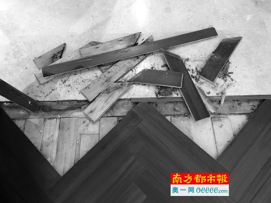 3月4日,接业主李小姐报料,南都记者第三次走访深圳南山科苑某楼盘。在李小姐家里,南都记者看到有三处木地板被掀开,与温馨的家装布置形成较大反差。“这已经严重影响我的生活,隔三差五就来拆拆补补。”李小姐表现得不耐烦,指着洗手间内一仪表告诉记者,这是在“打水压”,检测漏水原因,“未来两天我都没法用水,叫我怎么生活。”
