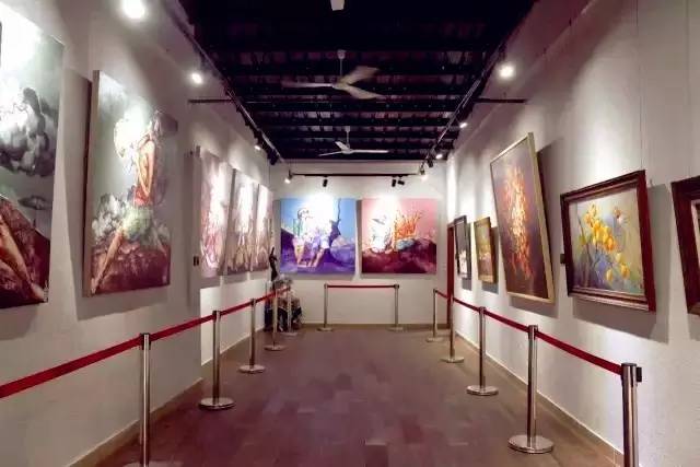 可以看到夹在巷子间的画廊