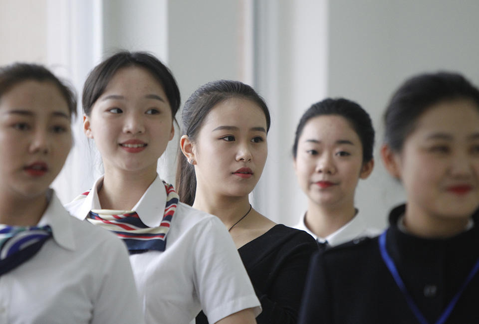 3月11日,郑州航空工业管理学院校园内,2017年播音、空乘类专业复试在东校区拉开帷幕。视觉中国