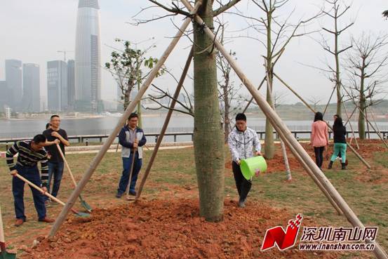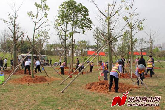 据区城管局绿委办工作人员介绍,本次植树活动共种植胸径20—40cm不等的大腹木棉、澳洲火焰木、黄花风铃木和官粉紫荆等观花树约50株,营造与公园建设规划保持一致的风格。工作人员还表示,南山区正朝着世界级创新型滨海中心城区的目标不断迈进,建设世界级森林城市,打造世界著名花园城区,正是配合南山打造世界级城区的重要举措。