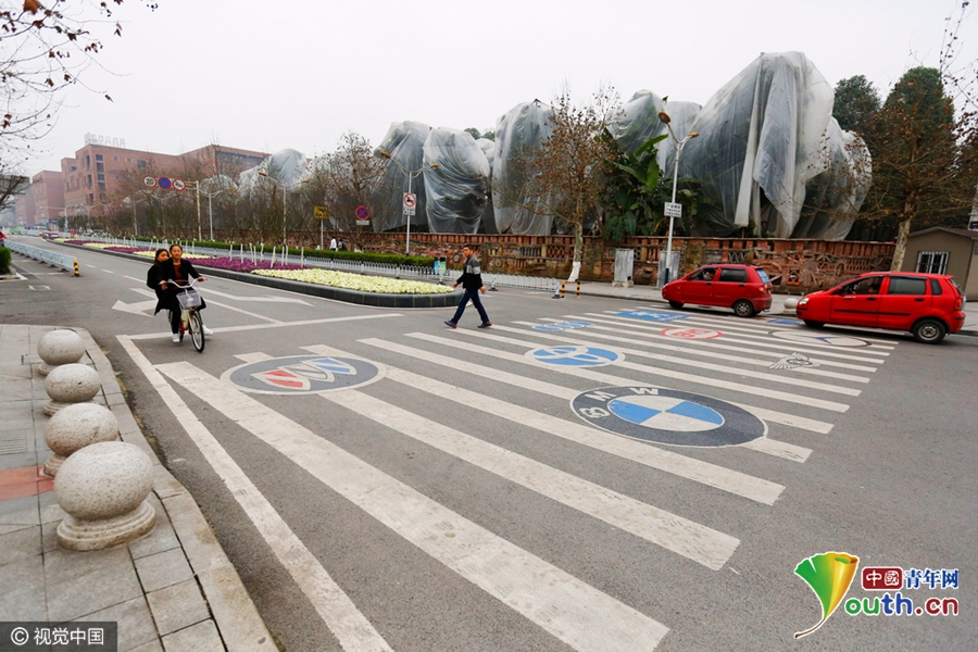 重庆一斑马线上印宾利、奔驰、奥迪等车标