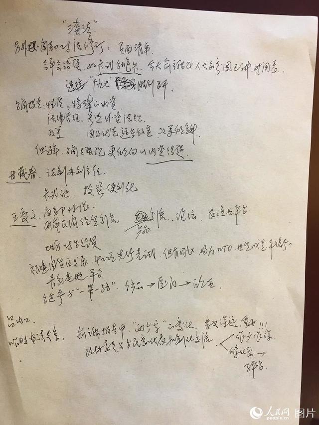 这是全国政协委员张宁的参会笔记。张宁委员是一名台籍委员,他的笔记写满了委员们小组发言的重点。人民网记者 罗旭 摄