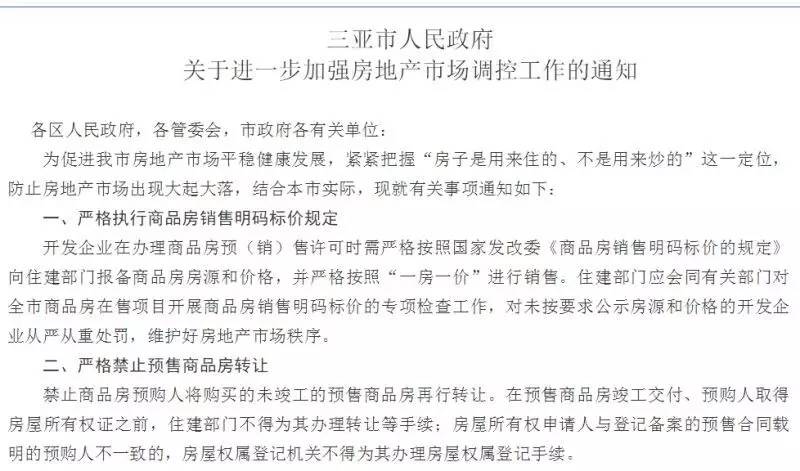 3月11日,海南三亚市政府官网发布《三亚市人民政府关于进一步加强房地产市场调控工作的通知》,进一步收紧当地楼市的信贷政策和市场秩序监管。进入3月以来,全国多地相继出台楼市限购升级政策。除三亚外,河北张家口的崇礼区、保定市下辖涿州和涞水,以及杭州等地区相继升级楼市限购政策。在业内看来,这些地区楼市近期回暖显著,是此轮限购升级的重要原因。