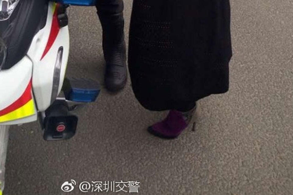 除了开车打电话,交警拦截女子后发现她穿着高跟鞋,反问称:“这鞋子适合开车吗?”图为女子穿的高跟鞋。