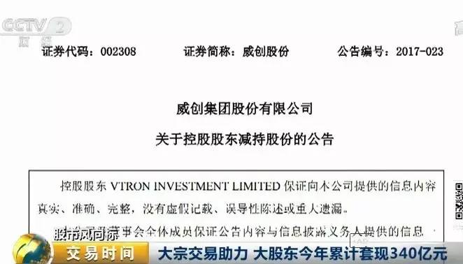 以威创股份为例,3月9号威创股份公告,控股股东威创投资3月9日通过大宗交易减持公司2900万股,占总股本3.422%,减持均价13.42元/股,估算成交额3.89亿元。接盘方为珠海安赐创业股权投资基金管理企业及其3名高管。至此,威创投资持股35.67%。