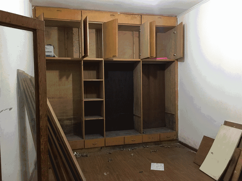 第一眼看到房子的时候,面面几乎是崩溃的!墙壁脱落、木质门框烂的不成样子…