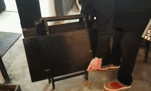 刷柜子的时候,基友老柴顺手就用旧木板做了这个可以折叠的餐桌,真是贴心!
