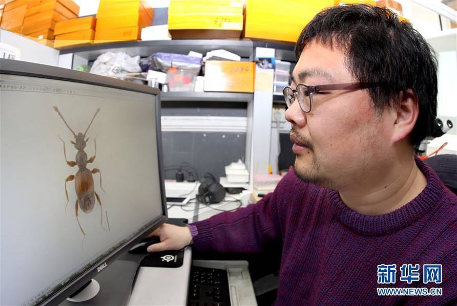 这是3月16日拍摄的“西郊公园毛角蚁甲”。近日,上海动物园发现园内生存着一种从未被记载过的小甲虫,经上海师范大学和上海动物园技术研究人员鉴定,这种甲虫被正式命名为“西郊公园毛角蚁甲”。摄影:凡军
